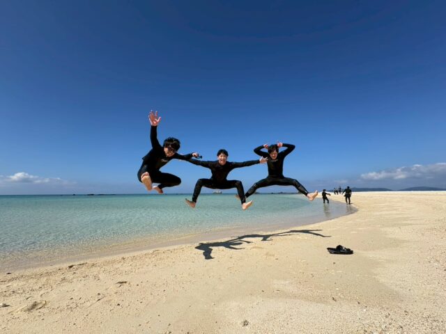 ミシュラン三つ星の景勝地・川平湾は、風向が合えば冬でも高確率で開催できる人気フィールド。透明度の高い海と白砂のコントラストは、冬でも圧巻です。